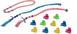 Im Set enthalten ist eine Vielzahl farbiger Haaraccessoires, die den Frisuren einen individuellen Stil verleihen.