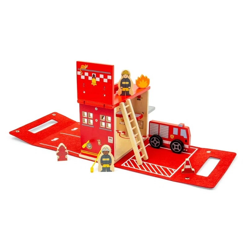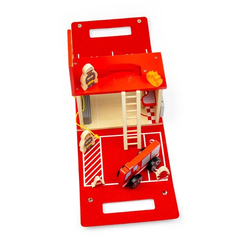 Machen Sie kleine Feuerwehrleute einsatzbereit mit einem kompakten Set, das sich schnell in eine Spielumgebung verwandelt und nach dem Spielen einfach zusammengeklappt wird. Die Holzstation dient außerdem als praktische Aufbewahrungsbox, sodass alle Teile beisammen bleiben und für das nächste Abenteuer bereit sind.
