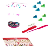 Kamm, Bürste, Perlen, Spangen, Bänder, Aufkleber, „Make-up“-Palette