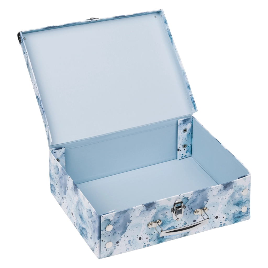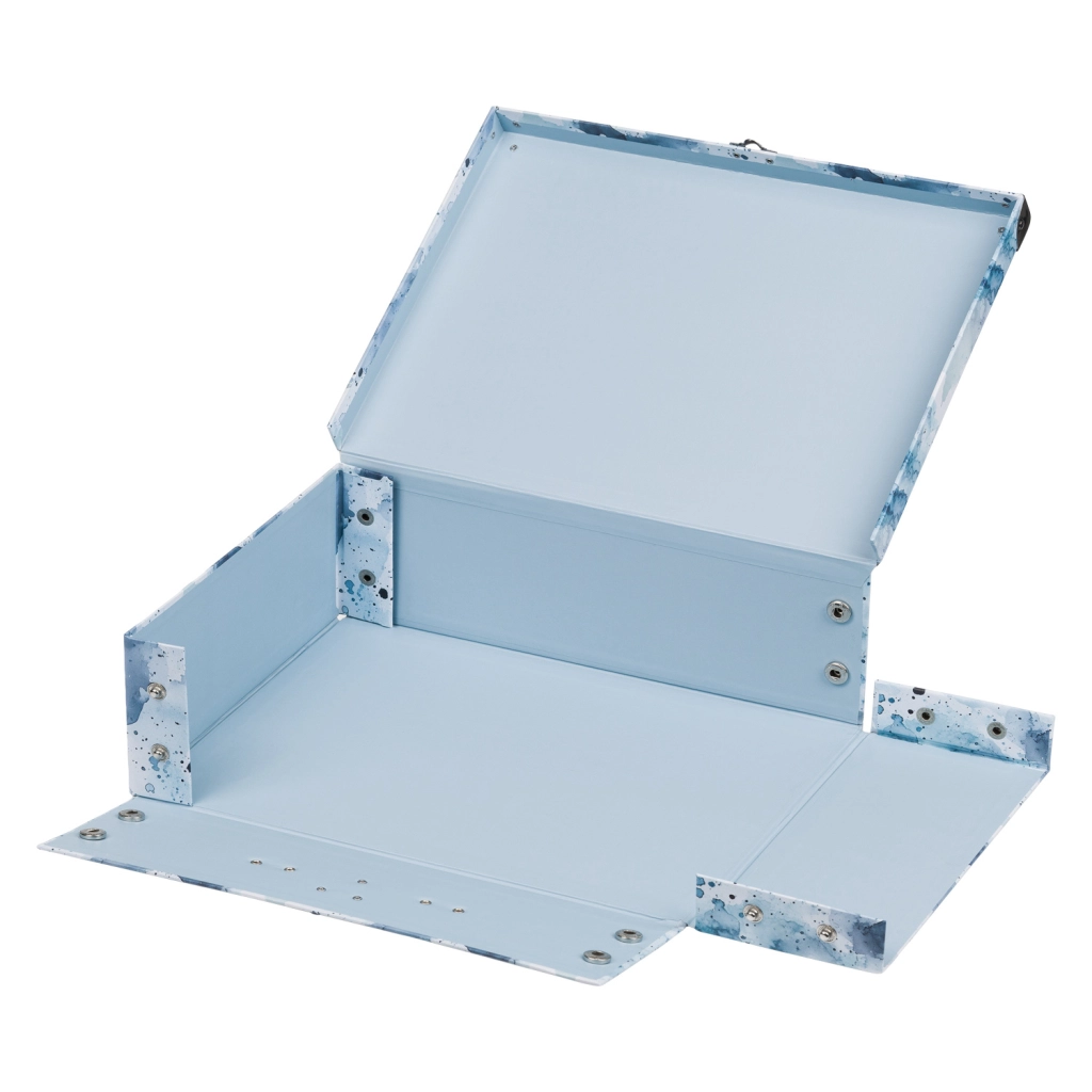 Die praktische Ausführung mit klassischer Schnalle und bequemem Metallgriff garantiert einfaches Tragen. Die Oberfläche aus festem laminiertem Karton ist pflegeleicht und widerstandsfähig gegen normalen Verschleiß.