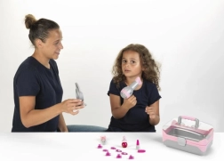 Diese Kollektion von Friseurbedarf der Firma Klein ist hauptsächlich für Mädchen bestimmt. Sie bietet eine breite Palette von Produkten, die sich hervorragend ergänzen. Kinder können durch das Spielen Situationen aus der Erwachsenenwelt nachahmen. Stylinggeräte wie Föhn oder Glätteisen ahmen die Arbeit echter Geräte nach und sind mit besonderer Sorgfalt hergestellt, damit Mädchen Frisuren nicht nur für ihre Puppen, sondern auch für ihre Mamas oder Freundinnen kreieren können. Der Föhn bläst Luft, aber wird nicht heiß. Kamm, Bürste und Haarnadeln haben abgerundete Enden, um sicher damit spielen zu können.