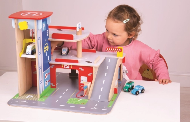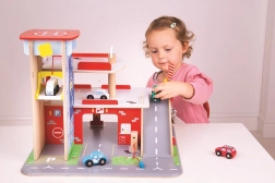 Kinder genießen ein spielerisches Erlebnis auf jeder der drei Etagen der Garage mit Parkplatz. Im Erdgeschoss können sie mit dem Auto in den funktionierenden Aufzug fahren und anschließend bis in den zweiten Stock hinauffahren und parken. Im Erdgeschoss finden Kinder einen Servicebereich, eine Waschanlage und eine Tankstelle. Vom ersten Stock aus können die Autos mithilfe des Aufzugs oder über die Rampe abfahren – aber Achtung, die Autos müssen auf das Heben der Schranke warten! Der höchste Punkt der Garage ist der Hubschrauberlandeplatz. Diese Garage hat einfach alles, was ein kleiner Fahrer braucht, um von Punkt A nach Punkt B zu kommen. Sie fördert Kreativität und Vorstellungskraft. Entwickelt die Hand-Auge-Koordination, die Feinmotorik und die Geschicklichkeit. Kann mit den Autos von Bigjigs Toys und Bigjigs Rail ergänzt werden. Hergestellt aus hochwertigen, verantwortungsvoll bezogenen Materialien. Hauptmerkmale: 3 Etagen mit Parkplatz und Hubschrauberlandeplatz, funktionierender Aufzug, Service, Waschanlage und Tankstelle im Erdgeschoss
