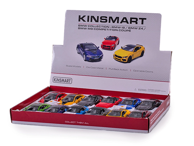 Die Kinsmart-Metallmodelle im Maßstab 1:38 bieten detailgetreue Miniaturen der BMW-Sportwagen. Dank der robusten Metallkonstruktion mit Kunststoffakzenten wirken die Modelle hochwertig und halten dem täglichen Spiel stand. Öffnende Türen betonen die Realitätsnähe, und der Rückziehmotor (Pull-Back) sorgt für dynamische Fahrten ganz ohne Batterien.