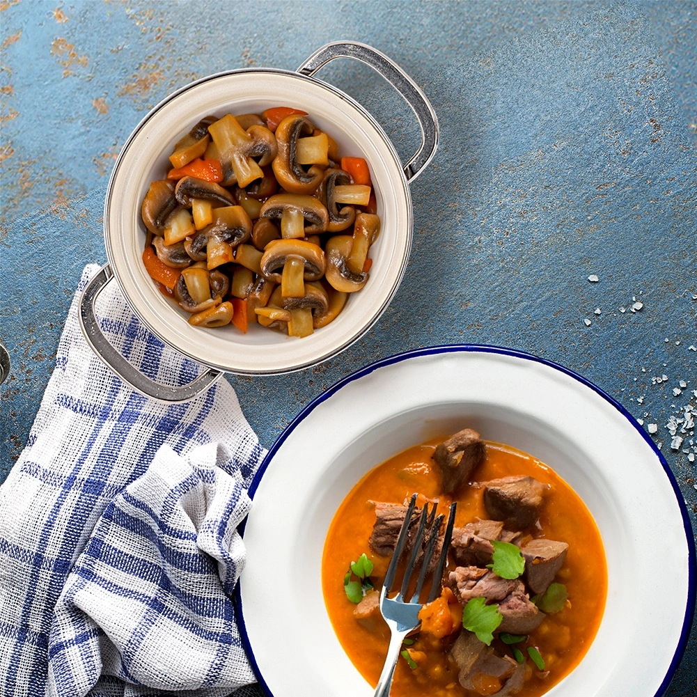 Die glatte, hygienische Oberfläche ist lebensmittelschonend und leicht zu reinigen. Der Edelstahlring und die Griffe erhöhen Stabilität und Langlebigkeit.