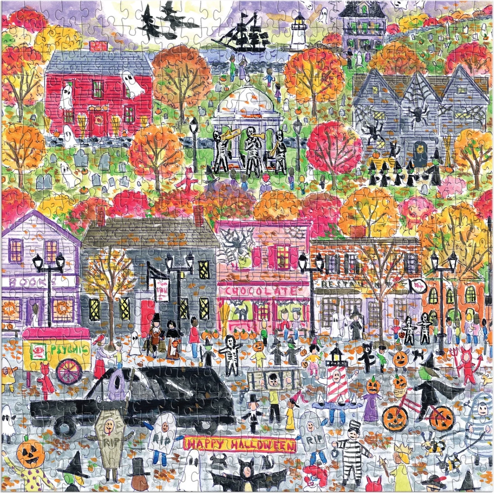 Entdecken Sie die Freude am Puzzeln mit einem Design-Puzzle, das eine verspielte und zugleich stilvolle Illustration der Halloweennacht bietet. Dank des quadratischen Formats kommt das Motiv bis ins letzte Detail zur Geltung und passt perfekt in die herbstliche Atmosphäre Ihres Zuhauses.