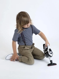 Der Kinderstaubsauger BOSCH Unlimited der Marke Klein ist so gestaltet, dass er einem echten Gerät möglichst nahekommt. Durch seine Ausführung motiviert er Kinder, Erwachsene nachzuahmen, fördert Verantwortungsbewusstsein und sorgt zugleich für viel Spaß bei alltäglichen Rollenspielen im Haushalt.