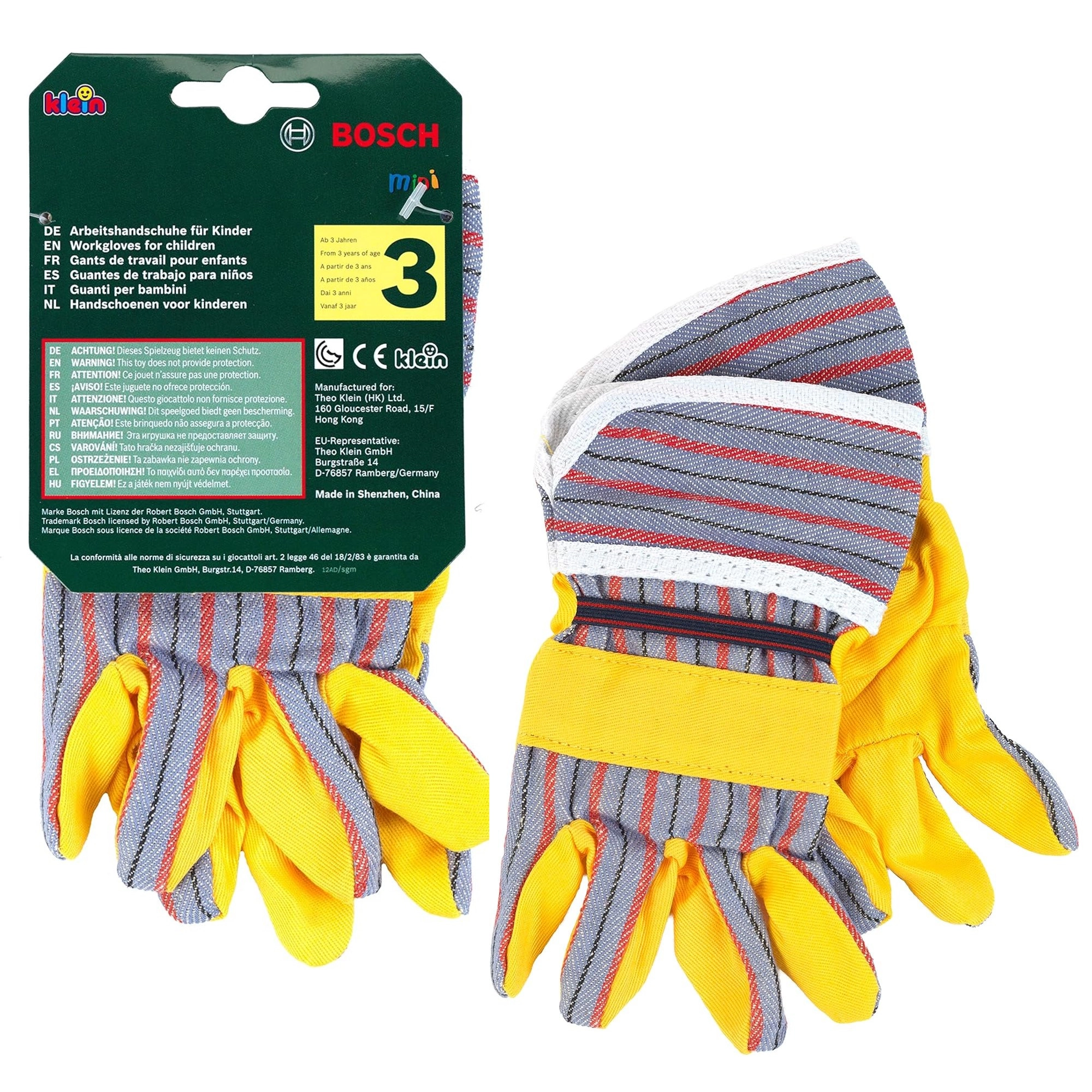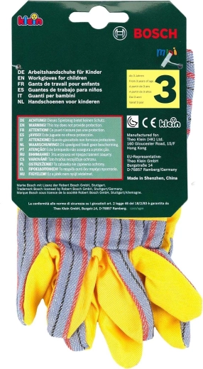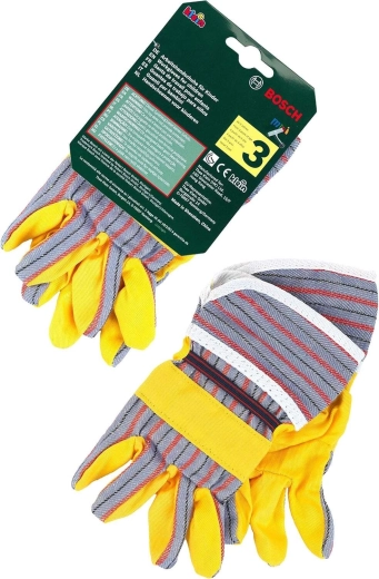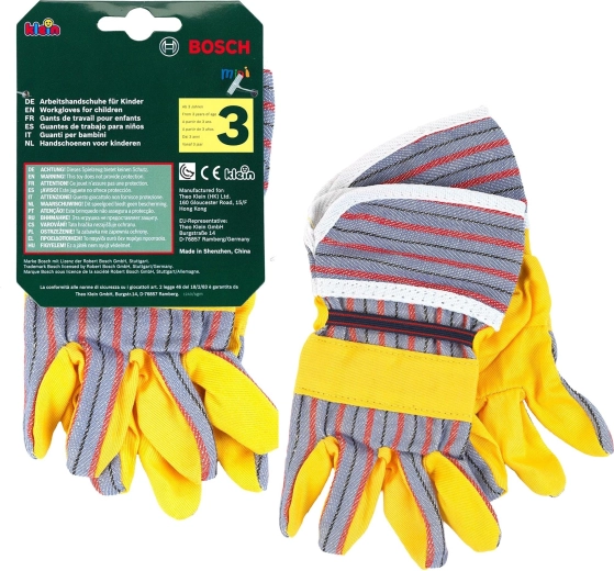 Sie ergänzen weitere Sets der BOSCH mini Serie hervorragend – von Bohrern über Gartengeräte bis hin zu Baustellenzubehör. Die Handschuhe sind für Rollenspiel und Kostüme gedacht und motivieren Kinder, Erwachsene bei leichten Aufgaben im Haus und im Freien nachzuahmen.