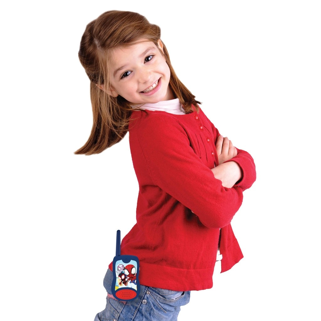 Schenken Sie Kindern actiongeladene Abenteuer mit dem Set aus zwei LEXIBOOK Spidey Walkie-Talkies, inspiriert von der Serie Marvel Spidey and His Amazing Friends. Leichtes Design, kräftige Farben und intuitive Bedienung fördern Fantasie, Kommunikation und Teamplay – im Garten, auf dem Spielplatz und im Haus.