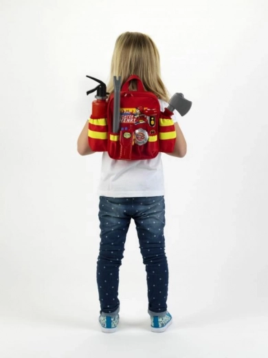 Feuerwehr-Rettungsrucksack für Kinder ab 3 Jahren. Enthält Feuerlöscher, Axt, Taschenlampe, Funkgerät und Brechwerkzeug. Leichter Rucksack für kreatives Spiel kleiner Feuerwehrleute.