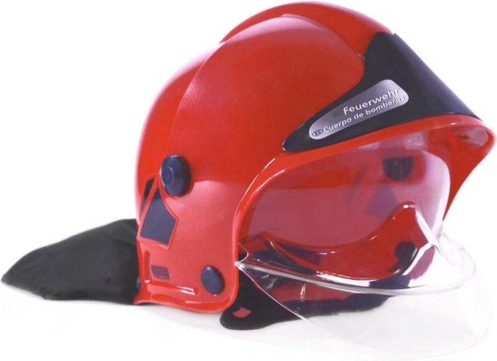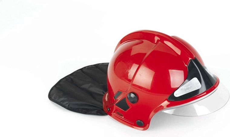 Der realistische Kinder-Feuerwehrhelm mit offizieller MSA-Lizenz begeistert kleine Lebensretter. Er bietet ein klappbares, klares Visier, einen Nackenschutz, ein verstellbares Innenkorb-System und einen Kinnriemen mit Klettverschluss. Hochwertige Verarbeitung und große Ähnlichkeit mit echter Ausrüstung garantieren fantastisches Rollenspiel für Kinder von ca. 3–10 Jahren.