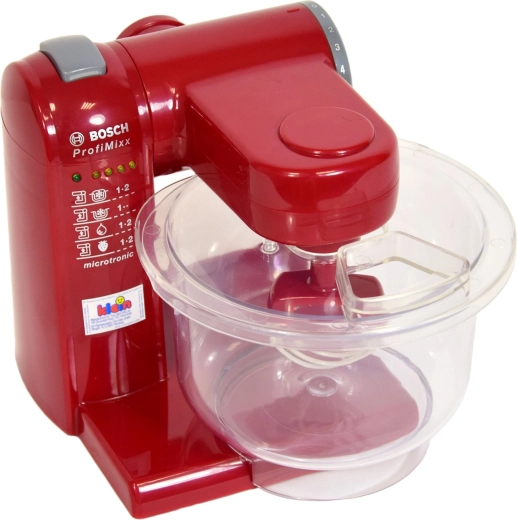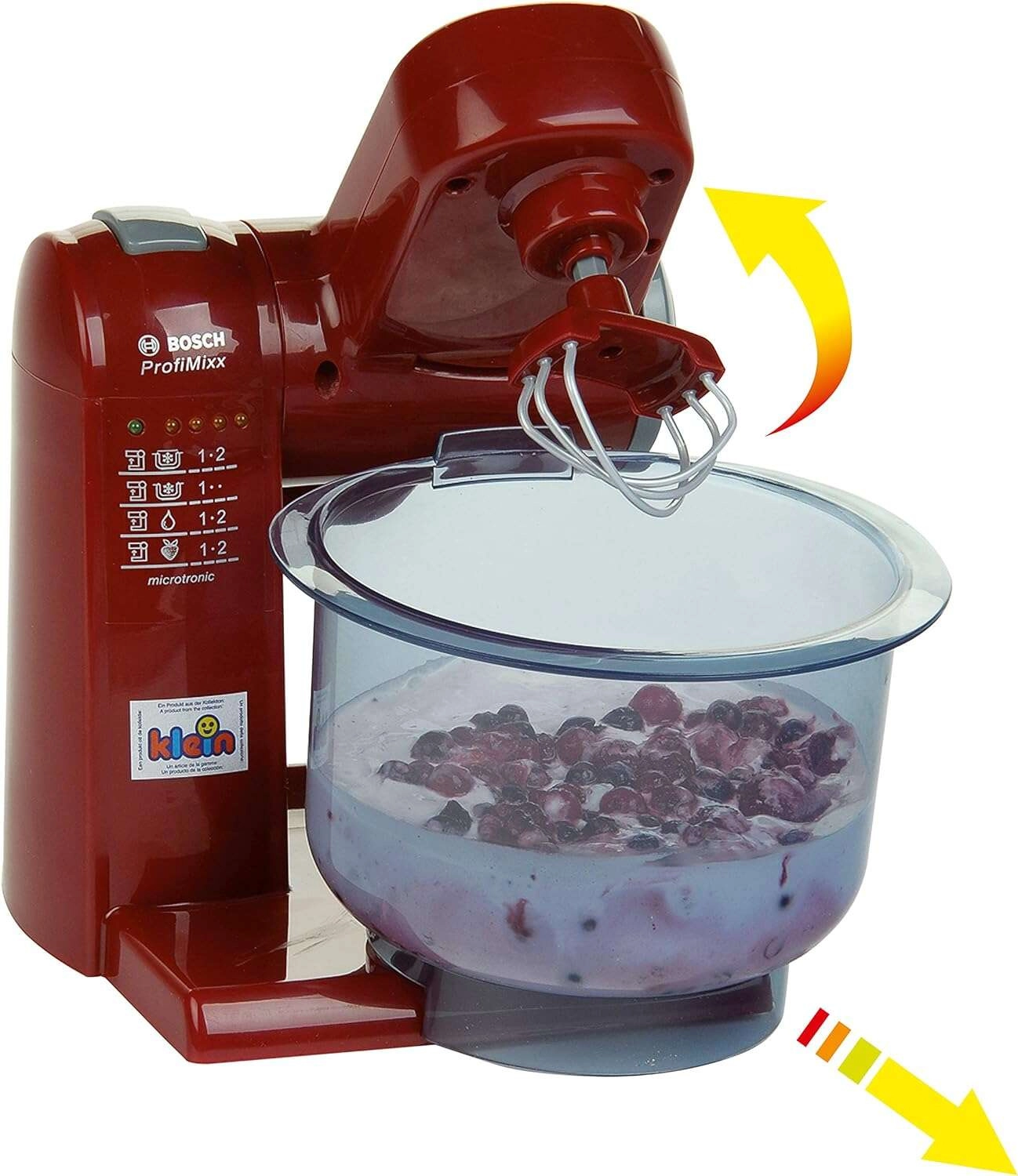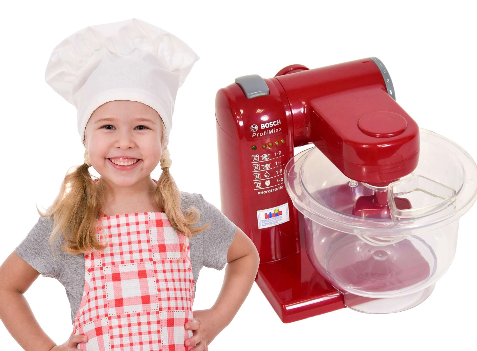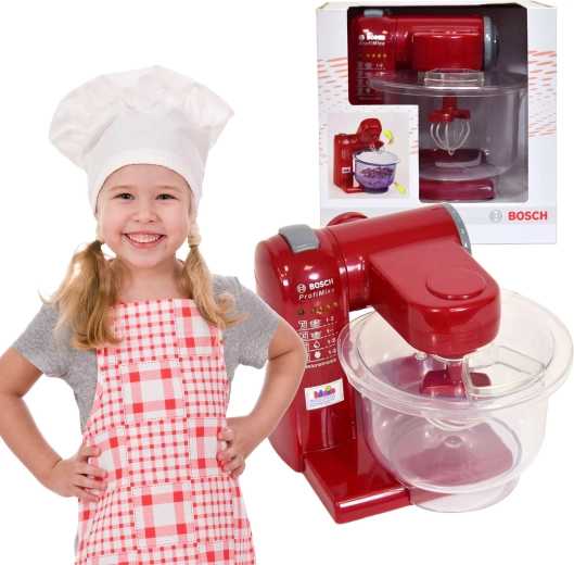 Diese stilvolle bordeauxrote Kinder-Küchenmaschine imitiert das Originalgerät von BOSCH detailgetreu. Dank der Licht- und Soundeffekte wirkt sie wie ein echtes Gerät und motiviert Kinder, Erwachsene beim Kochen nachzuahmen. Die leichte Konstruktion und sichere Materialien sorgen für eine bequeme und unbeschwerte Nutzung.