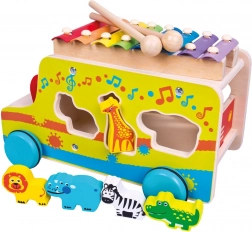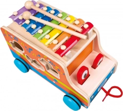 Das Holzspielzeug Bino ist der perfekte Begleiter für jedes Kind. Dieser Lastwagen dient nicht nur als Ziehspielzeug, sondern bietet auch eine unterhaltsame musikalische Komponente dank des Xylophons auf dem Dach mit Schlägeln. Das Spielzeug hilft, Fähigkeiten wie Farb- und Formerkennung zu entwickeln und unterstützt die Bewegungskoordination.