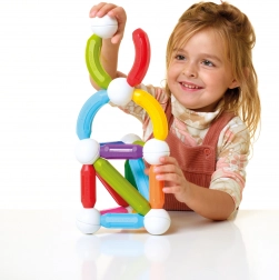 Der magnetische Baukasten SmartMax Start Plus ist die ideale Wahl für kleine Entdecker. Das Set enthält 30 Teile, darunter lange Stäbe, mittlere Stäbe, Kurven und Verbindungskugeln, die den Aufbau einfacher und komplexer Konstruktionen ermöglichen. Kinder können verschiedene 2D- und 3D-Formen und Bauwerke wie Türme oder Brücken ausprobieren.
