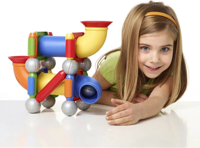 Genießen Sie stundenlangen kreativen Spaß mit der SmartMax Bahn für Kugel. Dieses magnetische Baukastensystem fördert die kindliche Vorstellungskraft durch einfaches Verbinden der Teile. Jedes Teil lässt sich mit einem Klick einfach verbinden, was den Bau verschiedener Strukturen wie Türme, Brücken und mehr ermöglicht.