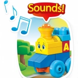Entdecken Sie die Freude am Lernen mit dem Musikzug mit Buchstaben von MEGA BLOKS. Kinder können drei Waggons verbinden, bunte Buchstabensteine aufladen und beim Zusammenbauen des Zuges spielerisch das Alphabet und erste Wörter lernen. Der interaktive Schornstein sorgt für Zuggeräusche und ein fröhliches Lied, die die Aufmerksamkeit halten und die Sinneswahrnehmung fördern.