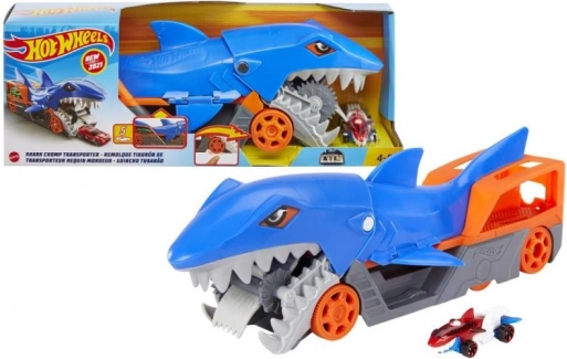 Der Hot Wheels City Shark Transporter bringt Action und Ordnung in einem. Das ikonische, vom Modell Shark Bite inspirierte Design bietet zubeißende Kiefer, die beim Vorschieben des Fahrzeugs „zuschnappen“ und das Auto im Inneren verstauen. Kinder lieben den dramatischen Verschling-Effekt, Eltern die praktische Aufbewahrung und Mitnahme.