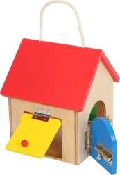 Dieses hochwertige Holzhaus von small foot steckt voller interaktiver Elemente – jede Tür hat eine andere Art von Verschluss, sodass Kinder spielerisch Fingerfertigkeit, logisches Denken und Geduld trainieren. Dank robuster Verarbeitung und leuchtender Farben ist es ideal für das Spielen zu Hause und unterwegs.
