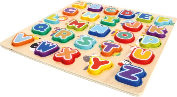 Dieses farbenfrohe Puzzle mit 26 Buchstaben hilft Kindern, sich spielerisch das englische Alphabet und Vokabular über niedliche Tierillustrationen anzueignen. Jeder Buchstabe hat seine eigene Aussparung, darunter befinden sich ein Bild und der englische Tiername – so wird Lernen zum Spiel.