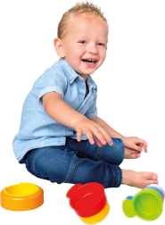 Das Stapeln der Ringe auf die Basis und das Ineinanderstecken stärkt Fingerkraft, Griff und Hand-Auge-Koordination bereits ab 10 Monaten.