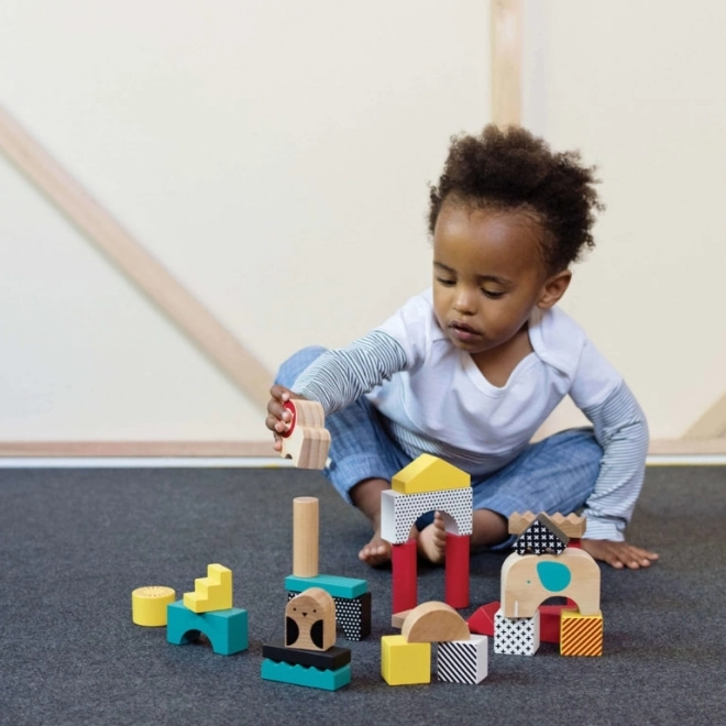 Entdecken Sie die Petit Collage Holzbausteine mit Tieren – ein zeitloses Spielzeug, das mit Ihrem Kind mitwächst. Das Set enthält 26 Bausteine in 14 Formen und 5 leuchtenden Farben mit verspielten Mustern und Motiven von 3 Tieren. Kinder können Türme, Städte und kleine Tierhäuschen bauen, Geduld üben und immer wieder freudig stapeln, bauen und umwerfen.