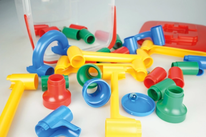Fördern Sie natürliche Neugier und Lernen durch Spiel. Das Bauen der Bahn lehrt Kinder zu planen, zu kombinieren und neue Varianten auszuprobieren. Das Spiel mit der Kugel stärkt zudem Geduld und Konzentration.