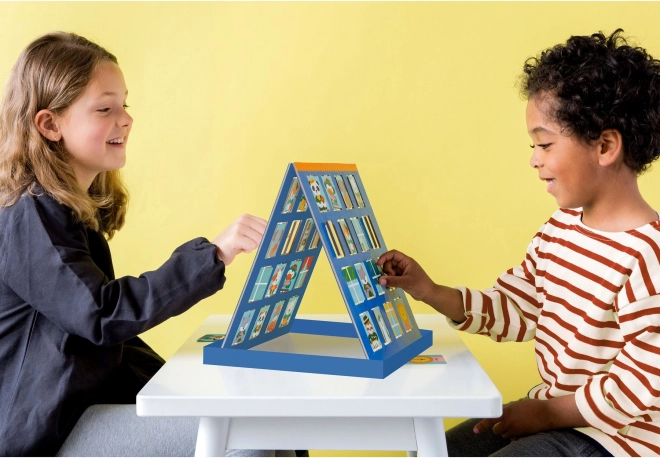Klopf, klopf! Wer ist da? Erratet, wer hinter der Tür ist, bevor es euer Gegner tut! Ein klassisches, unterhaltsames Deduktions-Brettspiel. Das Spiel verfügt über eine spezielle Spielfläche, die zu einem A aufgestellt werden kann. Sie ist beidseitig, hat drehbare Fenster und enthält kein Plastik. Hauptmerkmale: Spiel für zwei Spieler, durchschnittliche Spieldauer 10 Minuten. Hergestellt aus recycelten Materialien. Gedruckt mit Pflanzenfarben. Für Kinder von 4 bis 8 Jahren. Erfüllt und übertrifft alle Sicherheitsnormen.