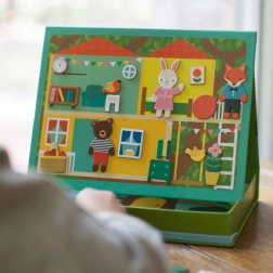 Das Magnetische Theater Tierhaus Petit Collage bietet Kindern unendliche Kombinations- und Szenenmöglichkeiten – vom gemütlichen Tierhäuschen bis zum niedlichen Picknick im Park. Dank der Stopper lässt sich die magnetische Szene leicht aufstellen, sodass aus der Box im Handumdrehen ein praktisches kleines Theater wird.