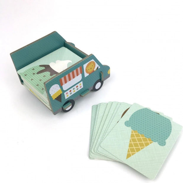 Genießt eine süße Portion Spaß mit dem Familienspiel Petit Collage Die beste Eiscreme. Kinder stapeln Eistüten, sammeln so viele Kugeln wie möglich und vergessen die leckeren Streusel nicht. Das Spiel fördert Wahrnehmung, strategisches Denken und Feinmotorik, ist dabei schnell und leicht zu verstehen.