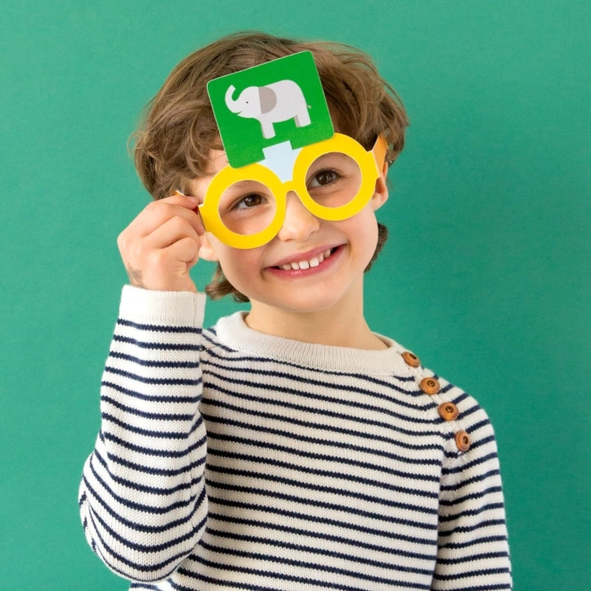 In der Box ist alles enthalten: 4 verstellbare Brillen mit Kartenhalter, 50 stabile Karten mit niedlichen Illustrationen und eine Sanduhr für das richtige Tempo. Hochwertige Verarbeitung aus recyceltem Papier und Druck mit pflanzlichen Farben – entspricht allen Sicherheitsstandards.