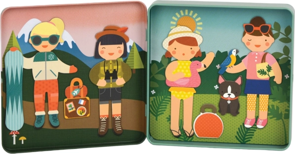 Dieses kompakte magnetische Buch von PETIT COLLAGE ist der perfekte Begleiter fürs Auto, den Zug oder den Urlaub. In der Dose befinden sich zwei illustrierte Szenen und ein Set magnetischer Teile, mit denen Kinder spielend fröhliche Figuren und Geschichten erschaffen. Das Spiel unterstützt Kreativität, Konzentration und die Entwicklung der Fantasie.