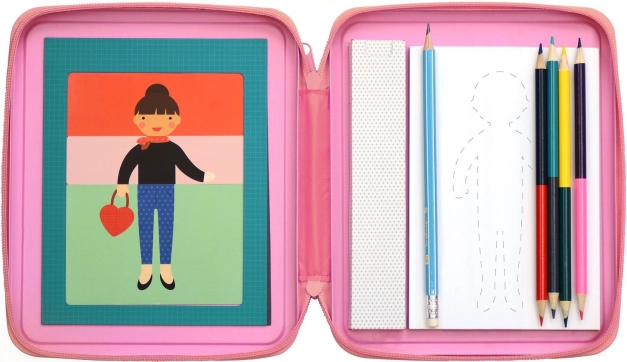 Das Modedesigner-Set von Petit Collage fördert die Kreativität und Fantasie von Kindern. Ideal für unterwegs oder zu Hause.
