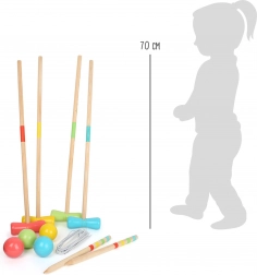 Das Small foot Holz-Kroket Active ist ein zeitloses Spiel für Kinder und Erwachsene. Die Tore lassen sich einfach in den Rasen stecken und mit größeren oder kleineren Abständen in unterschiedlichen Formationen aufstellen. So passen Sie Regeln und Spieltempo den Fähigkeiten und dem Alter der Spieler an.