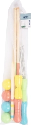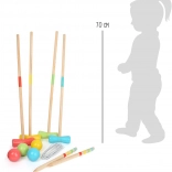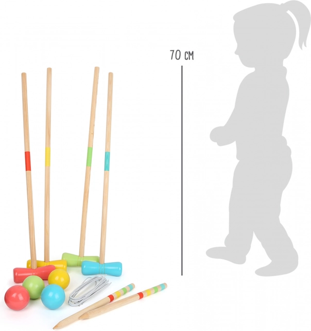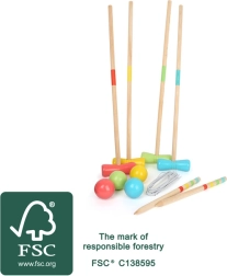 Das Set besteht aus 100 % FSC-zertifiziertem Holz aus verantwortungsvoll bewirtschafteten Wäldern. Beim Spielen werden Fein- und Grobmotorik, die Hand-Auge-Koordination sowie natürliche Teamarbeit gefördert. Die Holzkugeln müssen alle Tore in der vorgegebenen Reihenfolge passieren – wer das am schnellsten und mit den wenigsten Schlägen schafft, gewinnt.