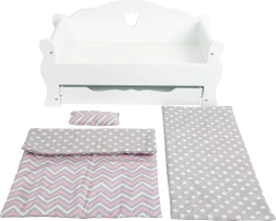 Dieses elegante Bettchen für Puppen oder Kuscheltiere kombiniert Stil und Praktikabilität. Es ist aus hochwertigem Holz gefertigt, das Langlebigkeit und Stabilität garantiert. Inklusive Matratze, Decke und Kissen bietet es maximalen Komfort für Puppen bis 45 cm Länge.
