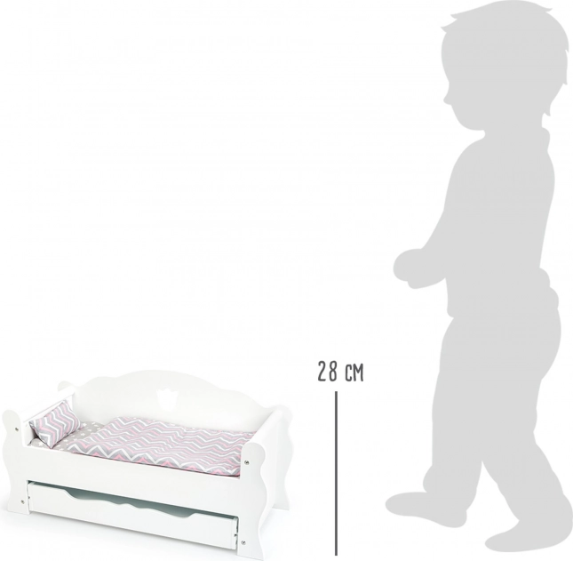 Der ausziehbare Stauraum unter dem Bett mit den Maßen 42x20 cm ist der idealer Ort zur Aufbewahrung aller notwendigen Accessoires oder Spielsachen. Das Bett ist nicht nur zum Schlafen geeignet, sondern auch ein dekoratives Element in Ihrem Kinderzimmer.