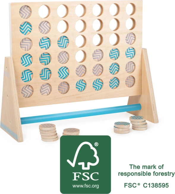 Das Spiel ist aus 100% FSC-zertifiziertem Holz gefertigt, das ökologische Nachhaltigkeit und hohe Widerstandsfähigkeit gewährleistet.