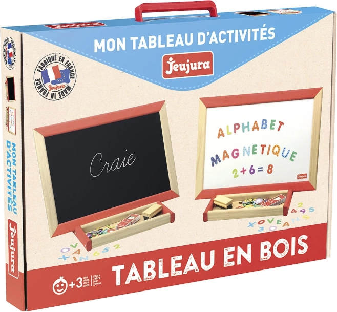 Die Jeujura Holz-Multifunktionstafel ist ein ideales Lernspielzeug für kleine Kinder. Aus massivem Buchen- und Kiefernholz aus Frankreich gefertigt, garantiert sie hohe Qualität und umweltfreundliche Produktion. Hauptmerkmale: