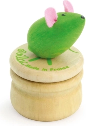 Die grüne Maus mit rosa Ohren und spitzer Nase bringt Freude in jedes Kinderzimmer.