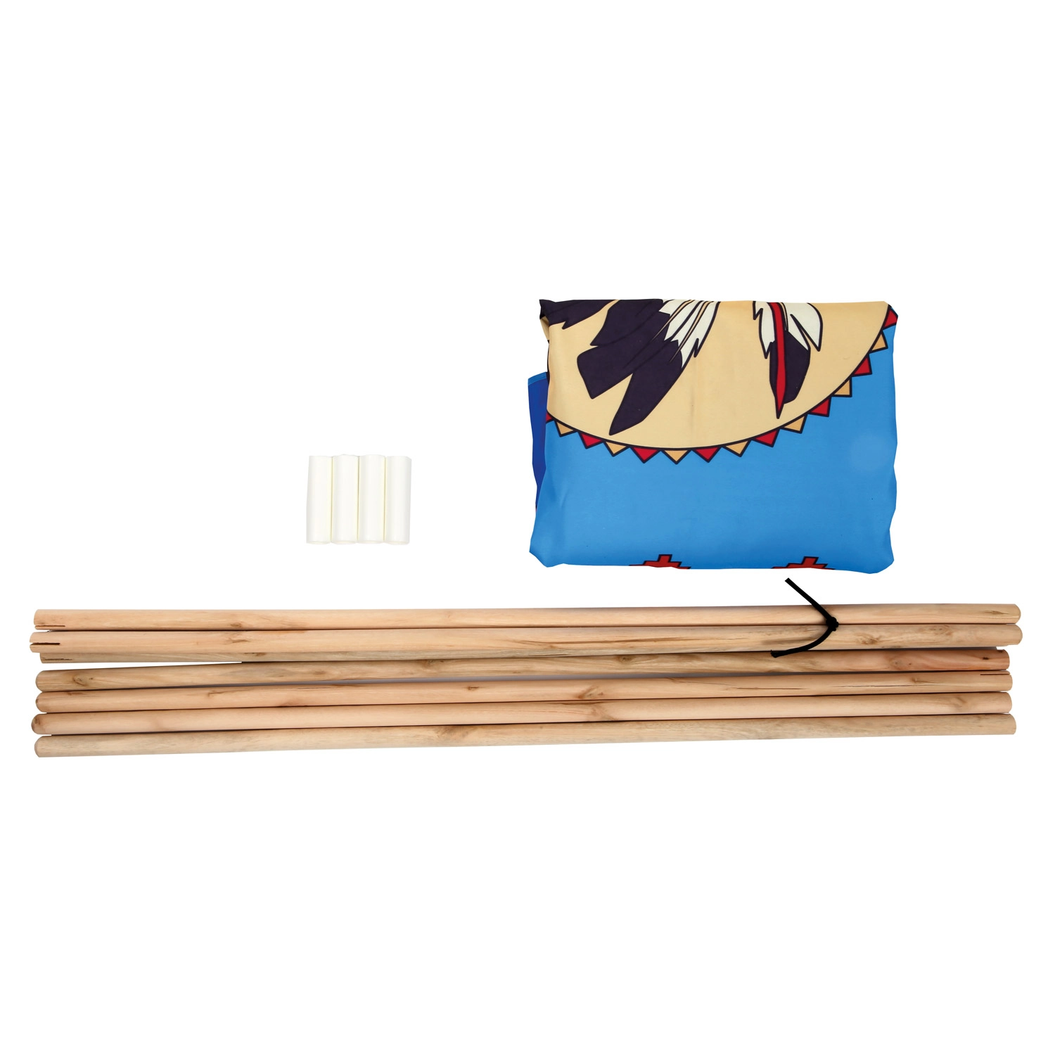 Das Tipi ist ideal für das Kinderzimmer, kann aber auch draußen bei trockenem Wetter genutzt werden. Dank der einfachen Montage ist es im Handumdrehen aufgebaut und nach dem Spielen schnell wieder aufgeräumt. Praktische Eingangsklappen lassen sich zubinden, damit Kinder mehr Privatsphäre haben.
