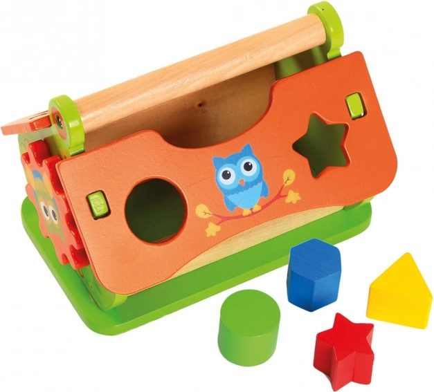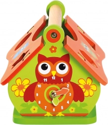 Das Holzhaus-Steckspiel Bino ist ein buntes, edukatives Spielzeug für Kinder ab 3 Jahren. Beim Einsetzen der Formen, Drehen des Zahnrads und Einstellen der Uhrzeiger mit Eulenmotiv trainieren Kinder ihre Fingerfertigkeit. Dank hochwertigem Sperrholz und Massivholz ist das Spielzeug stabil, langlebig und bereit für tägliche Entdeckungen.