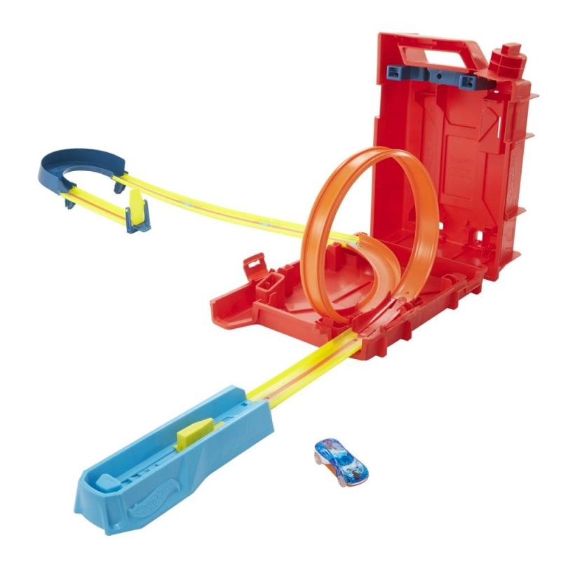 Alles, was Kinder zum Bauen eigener Strecken und Stunt-Tricks brauchen, versteckt in einem praktischen Kanister-Koffer. Baue, baue um und präsentiere Loopings und Sprünge dank geraden und gebogenen Streckenteilen. Die Aufbewahrungsbox ist zugleich Teil der Strecke und im Set ist 1 HOT WHEELS Auto enthalten – der Spaß kann sofort beginnen.