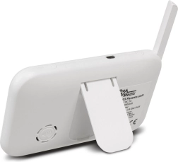 Die Elterneinheit mit Farbdisplay, Antenne und physischen Tasten ermöglicht komfortables Monitoring und schnellen Zugriff auf alle Funktionen.