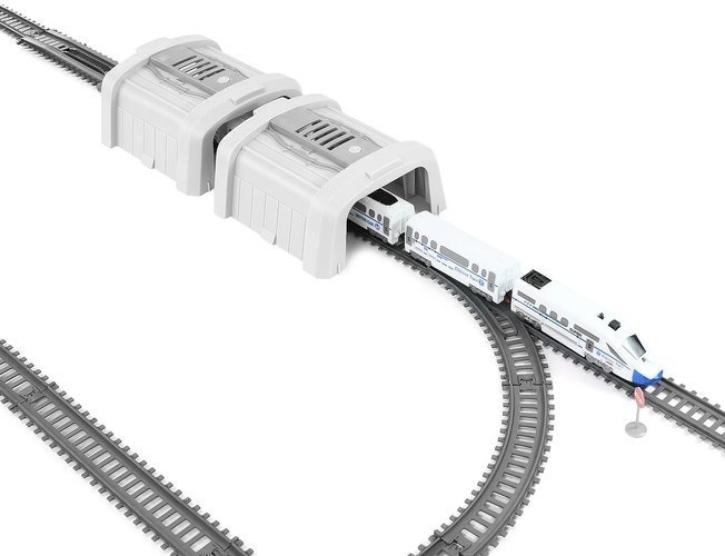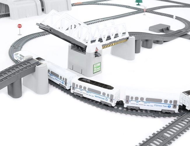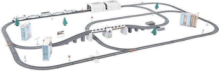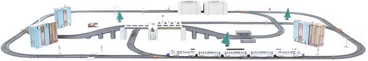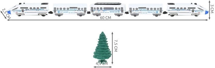 - Abmessungen der Lokomotive mit Wagen (Länge / Breite / Höhe): 60 / 2,5 / 3 cm