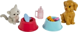 Das Set enthält 4 Tiere (2 Hunde, 1 Kätzchen und 1 Vögelchen auf einer Schaukel), außerdem ein Körbchen, einen Transportkorb, Näpfe, Leckerlis, medizinische Instrumente, eine Halskrause nach dem Eingriff, ein Fläschchen mit „Pumpe“, ein Fläschchen mit „Medizin“ und ein Bogen mit Pflastern/Bandagen. Ein ideales Geschenk für Kinder ab 3 Jahren, das Rollenspiel, Empathie und Feinmotorik fördert.