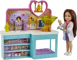 Entfacht die Fantasie der Kinder mit dem Chelsea Spielset, das eine komplette tierärztliche Station für die Pflege von Haustieren bietet. Puppe Chelsea in einem niedlichen Kleid und weißem Kittel führt Untersuchungen auf dem Tisch durch, hört mit dem Stethoskop ab und wiegt auf der funktionalen, beweglichen Waage. Dank der umfangreichen Ausstattung können Kinder realistische Szenarien von Vorsorgeuntersuchungen bis zur liebevollen Rekonvaleszenz nachspielen.