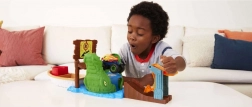 Öffne das Maul des Krokodils und schieße den monströsen Truck Piran-ahhh ins Geschehen! Sobald er in das kalte Wasser in seinen Kiefern fällt, ändert er die Farbe und zeigt einen neuen Look. Übergießt du das Fahrzeug auf dem Boot mit warmem Wasser, kehrt es zu seinem ursprünglichen Design zurück – immer wieder.
