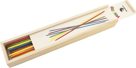 Gesellschaftsspiel Mikado ist ein klassisches Vergnügen für alle Altersgruppen, das Geschicklichkeit und Geduld trainiert. Das Set enthält 41 Holzstäbchen, die in einer eleganten Holzbox untergebracht sind.
