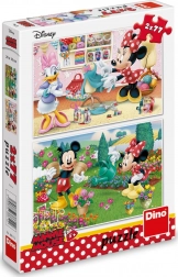 Dieses Set bietet 2 Puzzles mit je 77 Teilen mit den beliebten Figuren Minnie, Micky und Daisy in fröhlichen Szenen voller Blumen und Kreativität. Die stabilen Teile aus Qualitätskarton liegen gut in der Hand und greifen präzise ineinander – ideal für Kinder, die Geduld und Geschicklichkeit üben.