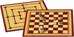 Genießen Sie den Spaß mit Dame und Mühle mit hochwertigen Holzsteinen, ideal für Familienabende.