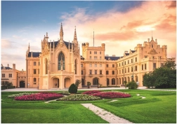 Entdecken Sie den Zauber des wunderschönen Schlosses Lednice mit diesem 500-teiligen Puzzle der Marke Dino, das Ihnen Unterhaltung und Konzentrationsübungen bietet.